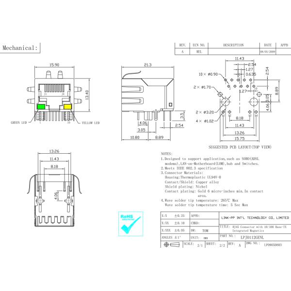 | Magnetics Speed | Magnetics 10/100Mbps Or 1000Mbps |